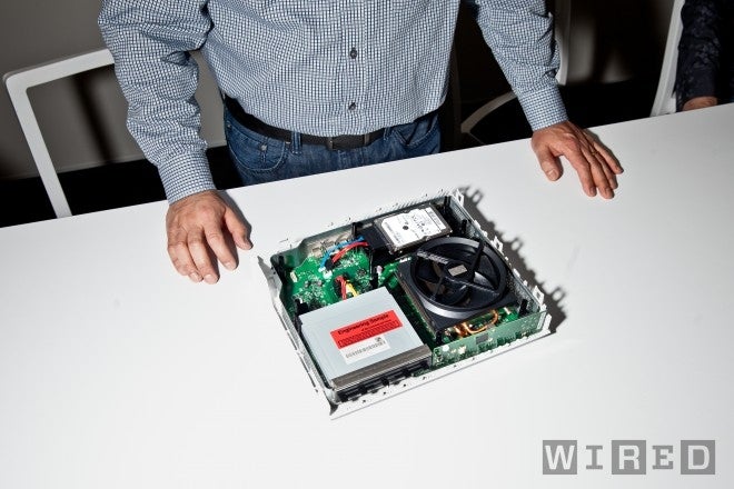 Der Blick auf dieses Innenleben, den man durch die Fotos von Wired geboten bekommt, ist faszinierend. Wir sehen ein großes, quadratisches Motherboard mit einem Blu-Ray-Laufwerk in Standardgröße auf der linken Seite, daneben ein gewaltiger Heatsink und Lüfter. Der erste Eindruck ist, dass Microsoft auf jeden Fall seine Lektion aus dem Design der Xbox 360 gelernt hat. Der Kühler ist wirklich massiv und nutzt Kupfer-Heatpipes für einen optimalen Transfer der Hitze, bevor sie vom großen Lüfter aus dem Gehäuse geblasen wird. Je größer er ist, desto langsamer muss er laufen und desto leiser ist er. Hinter dem Kühler sehen wir eine standardmäßige 2,5-Zoll-Festplatte. Microsoft sagt, sie kann nicht ausgetauscht werden, ihr habt also 500 GB festen Speicherplatz. Über die USB-3.0-Ports hinten und an der Seite lassen sich aber zusätzliche Speichergeräte anschließen - wir vermuten, dass es sich dabei um Standard-Geräte und nicht um irgendwelche speziellen Geräte handelt, die uns das Unternehmen aufzwingen will.