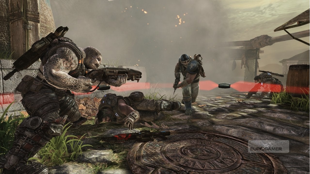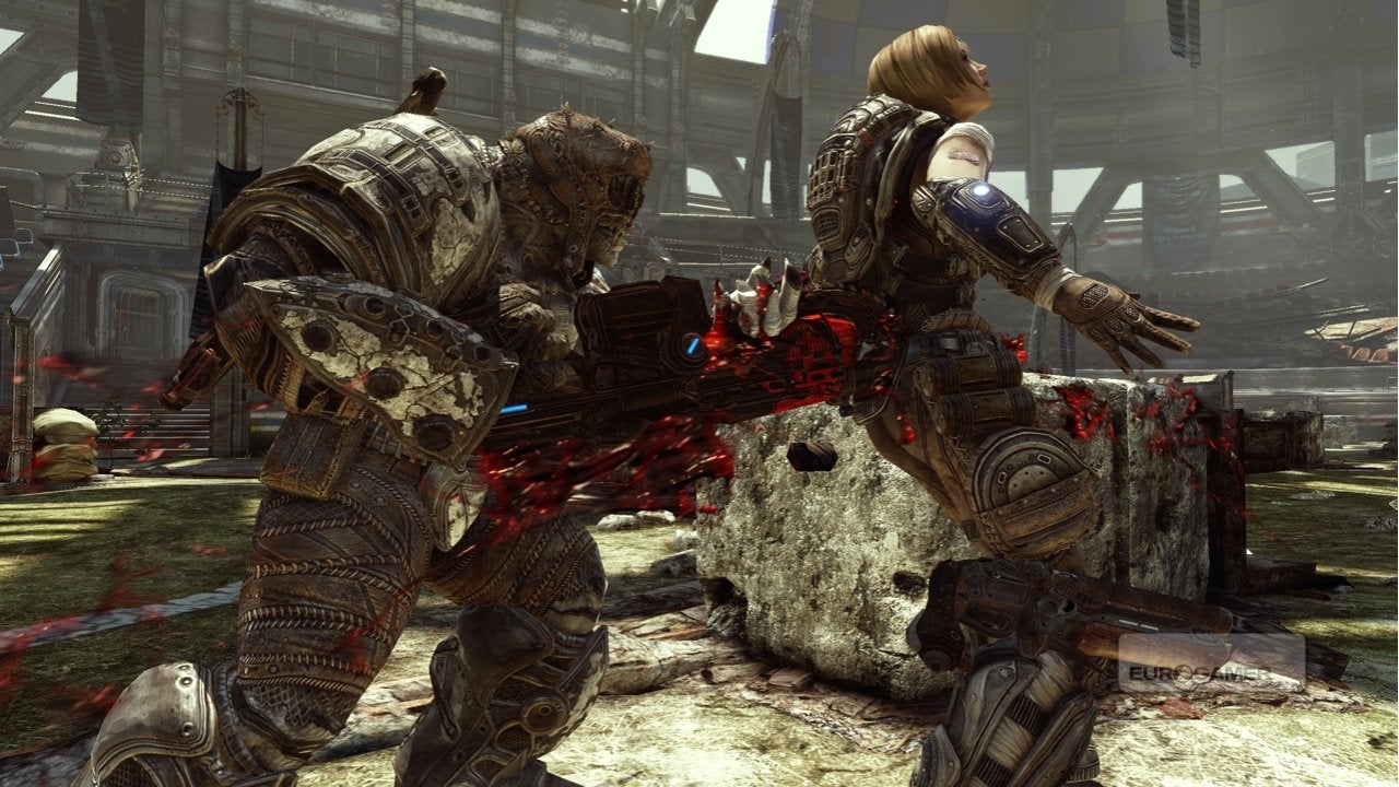 Selbstverständlich könnt ihr euch aber ebenso beim Arsenal der Locust-Horde bedienen und ihre Waffen und die passende Munition dazu für lau aufsammeln, wenn ihr denn wollt. Und wenn es mal hart auf hart kommt, habt ihr schließlich immer noch die Kettensäge an eurer Lancer. Immer wieder ein blutiges Vergnügen.