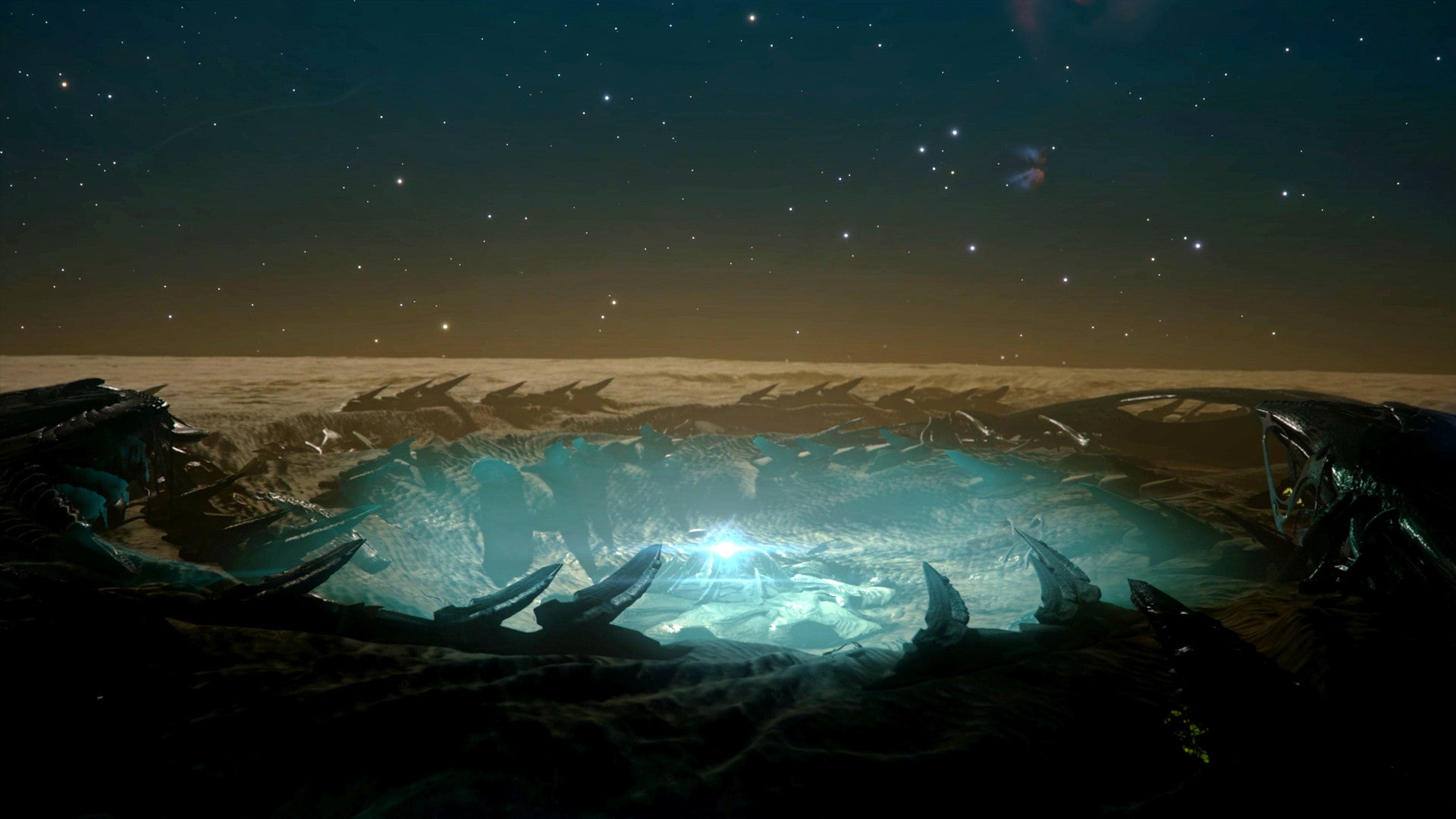 "Ich wollte nicht, dass jeder Planet bloß eine neue Map mit anderen Höheninformationen und unterschiedlicher Farbe ist. Planeten sollten nicht etwas sein, auf dem es nicht wirklich etwas zu sehen gibt. Das würde sich sinnlos anfühlen", beschreibt er einen Knackpunkt seiner alten Spiele, die bereits Planetenlandungen boten. "Ich will, dass die Planetenkomponente sehr viel reichhaltiger ist. Man soll in ein Fahrzeug umsteigen können und herumfahren. Dinge tun können. Vielleicht irgendwas auf einem Planeten verstecken oder es einfach nur absetzen, weil die schiere Größe des Planeten es unwahrscheinlich macht, dass es je irgendjemand anderes findet."